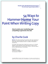 * A CD and newsletter shipped to you each month. 12 times a year Charlie gets one of the top marketers alive to reveal their top money-making ideas. Then Charlie takes the most important tactic presented and explains exactly how you can use it, along with examples and samples you can copy.